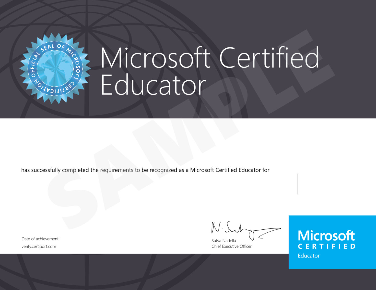 Through Certiport’s full pathway solution educators can prepare themselves for the Microsoft Certified Educator certification exam with customized eLearning materials, free self-assessments, and the Technology Literacy for Educators certification exam.